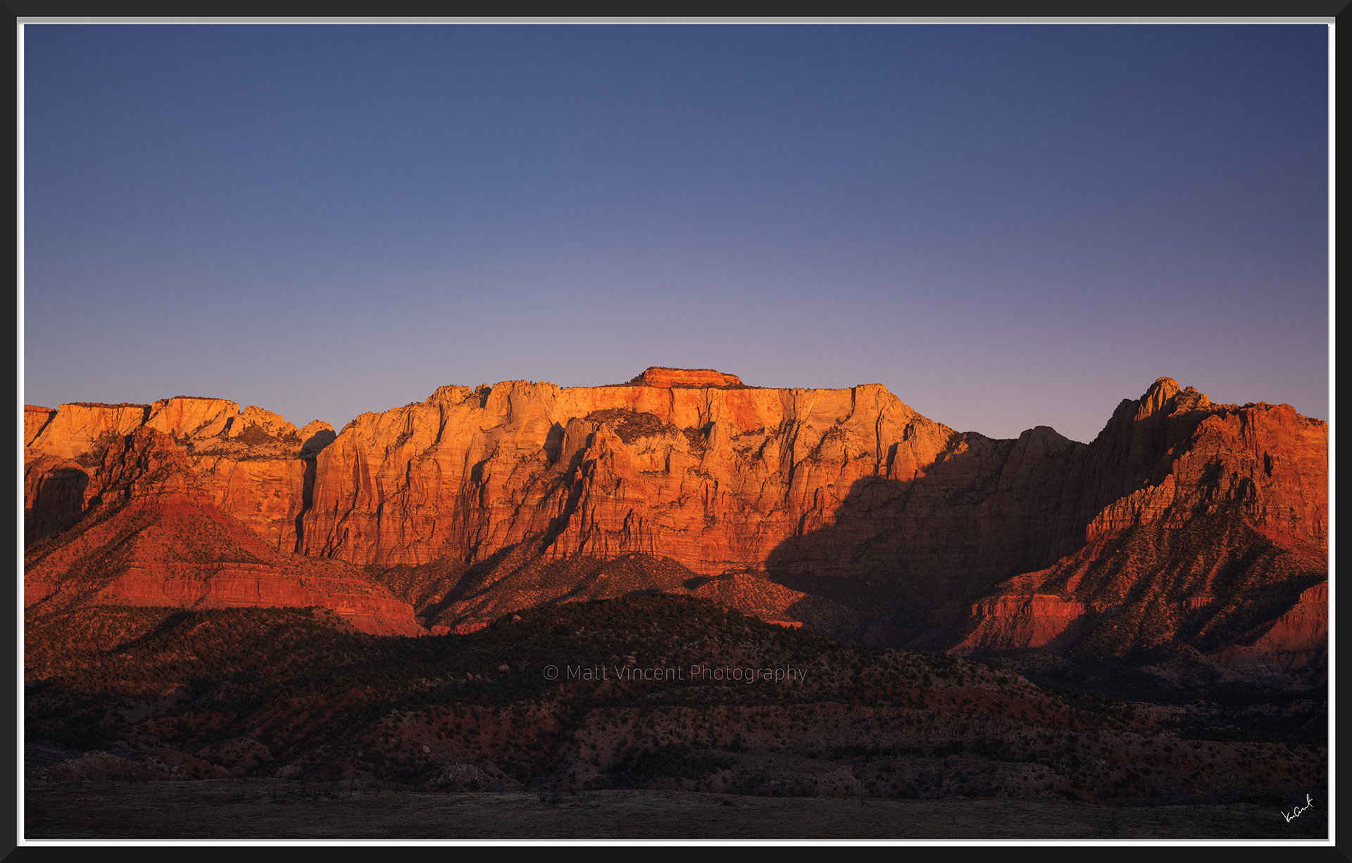 Winter Sunset on The West Temple and Mount Kinesava
